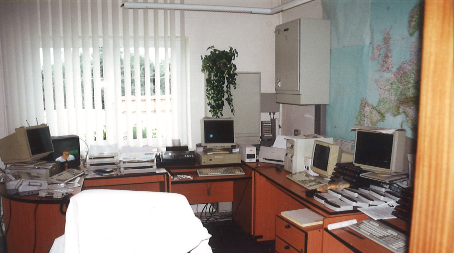 A tiež sa sťahujeme z jednej miestnosti v byte rodiny zakladateľov do kancelárie v Sklárskom ústave HK. Hlavným z dôvodov je potreba väčšieho počtu telefónnych liniek, ktoré nebolo do bytu v panelovom dome možné priviesť