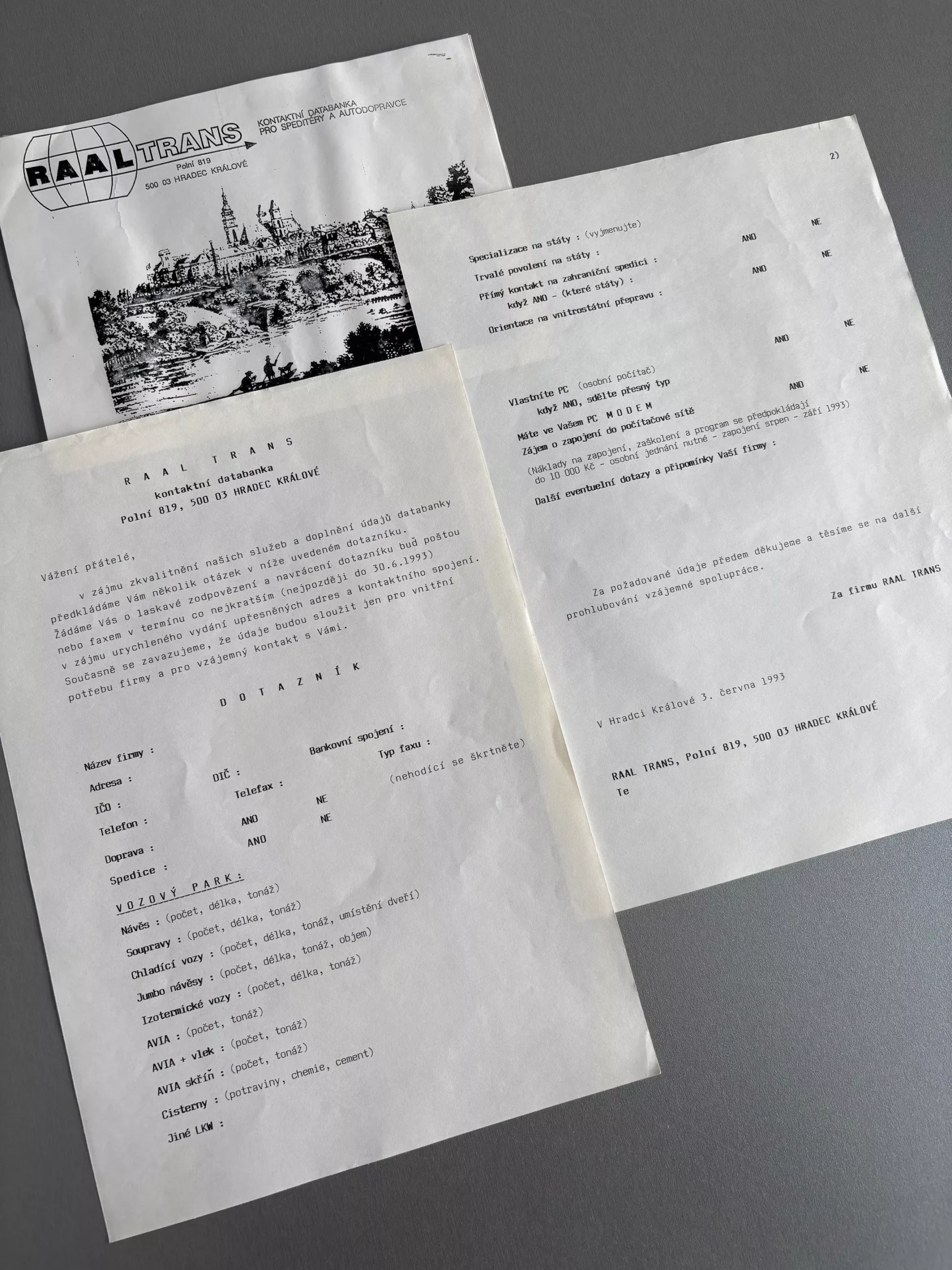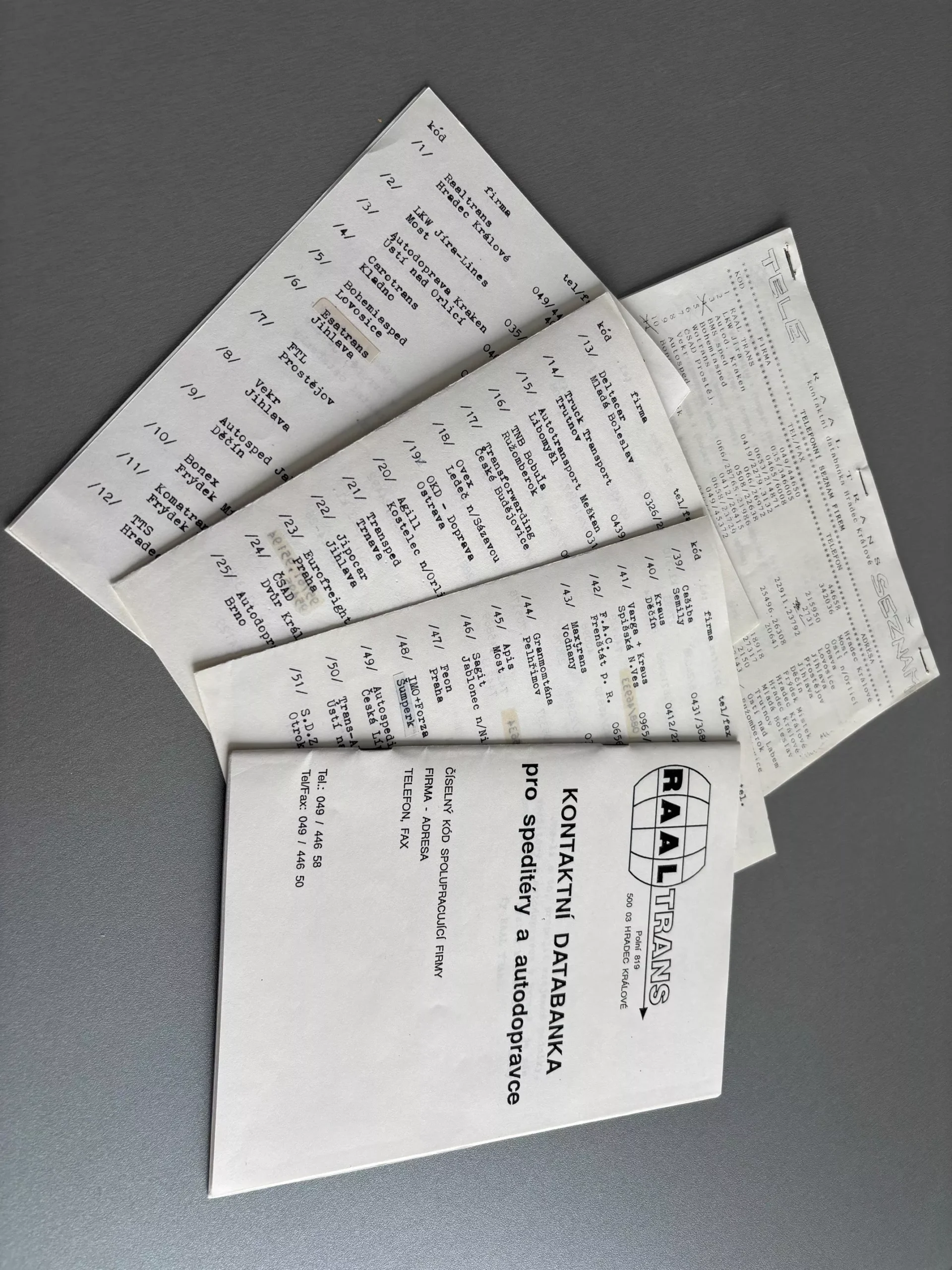 Sme rýdzo česká firma, založená v roku 1992 so sídlom v Hradci Králové. Vedľa centrály v Českej republike prevádzkujeme ešte pobočku na Slovensku v Malom Cetíne pri Nitre. Zaoberáme sa logistikou nákladnej automobilovej dopravy a prevádzkujeme rovnomennú databanku. Špedičná databanka RAALTRANS je unikátny systém na zdieľanie ponúk nákladov a voľných vozidiel navzájom medzi jej užívateľmi. Tí tak môžu ostatným používateľom ponúknuť náklad, ktorý potrebujú previezť alebo voľné vozidlo na vyťaženie. Samozrejme môžu v týchto ponukách aj vyhľadávať a ľahko si nájsť vyťaženie svojho vozidla alebo voľné vozidlo pre svoj tovar. Našou snahou je prepájať firmy, ktoré sa nákladnou autodopravou zaoberajú alebo ju na svoje fungovanie potrebujú. Postupom času sa portfólio našich užívateľov rozšírilo a okrem firiem dopravných, špedičných a logistických, využívajú náš systém aj firmy výrobné a obchodné. Prihlásenie a obsluha databanky sú zrozumiteľné aj pre osoby mimo odboru logistiky.